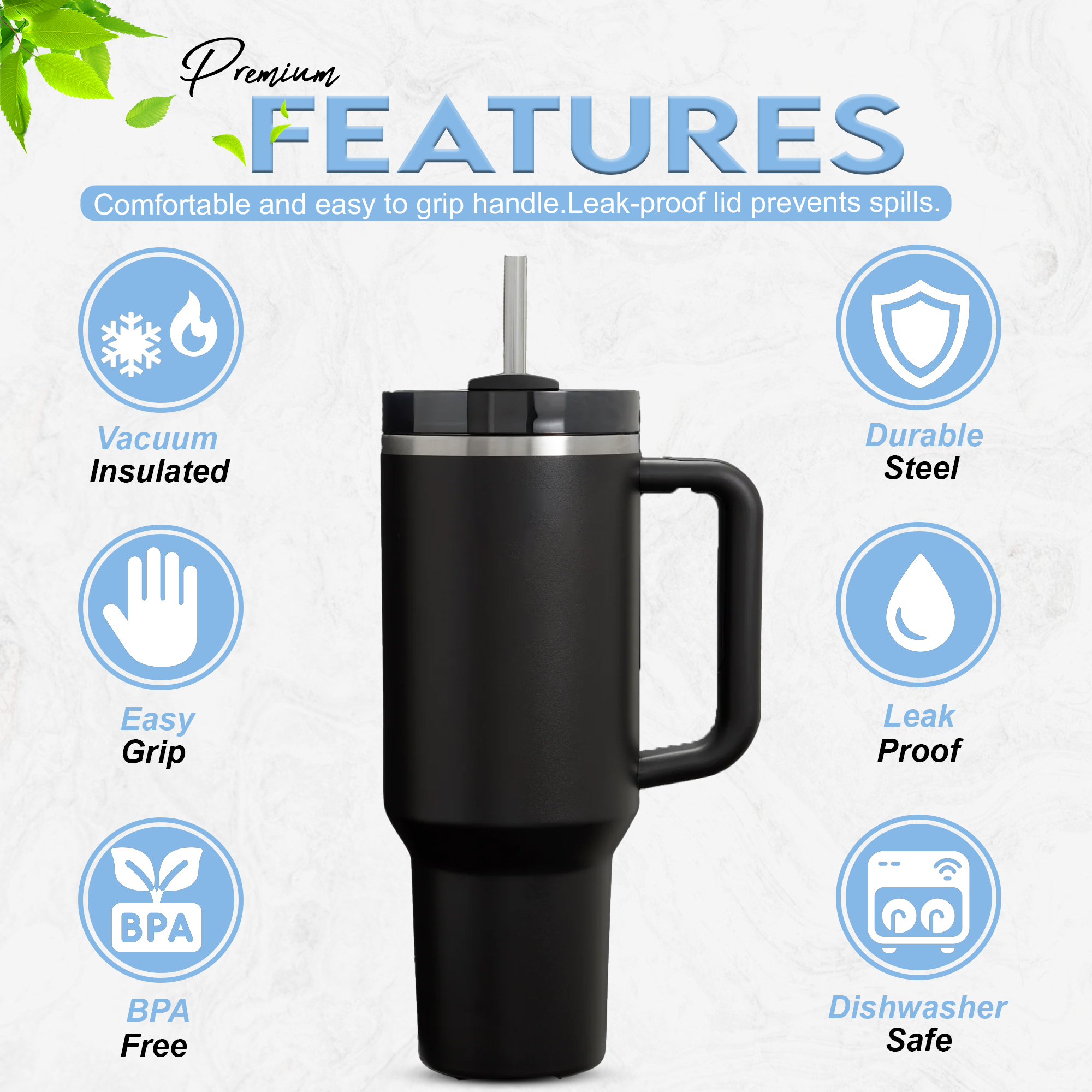 40oz large capacity with leak-proof lid & straw